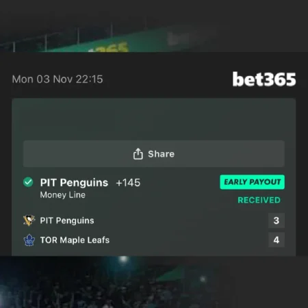 Because of Bet365’s Early Payout feature, both sides of the Penguins vs Leafs game got paid out.