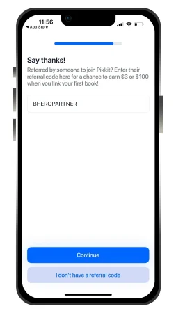 Tip: Use a phone number you have immediate access to — Pikkit will send a one-time code to verify your identity.